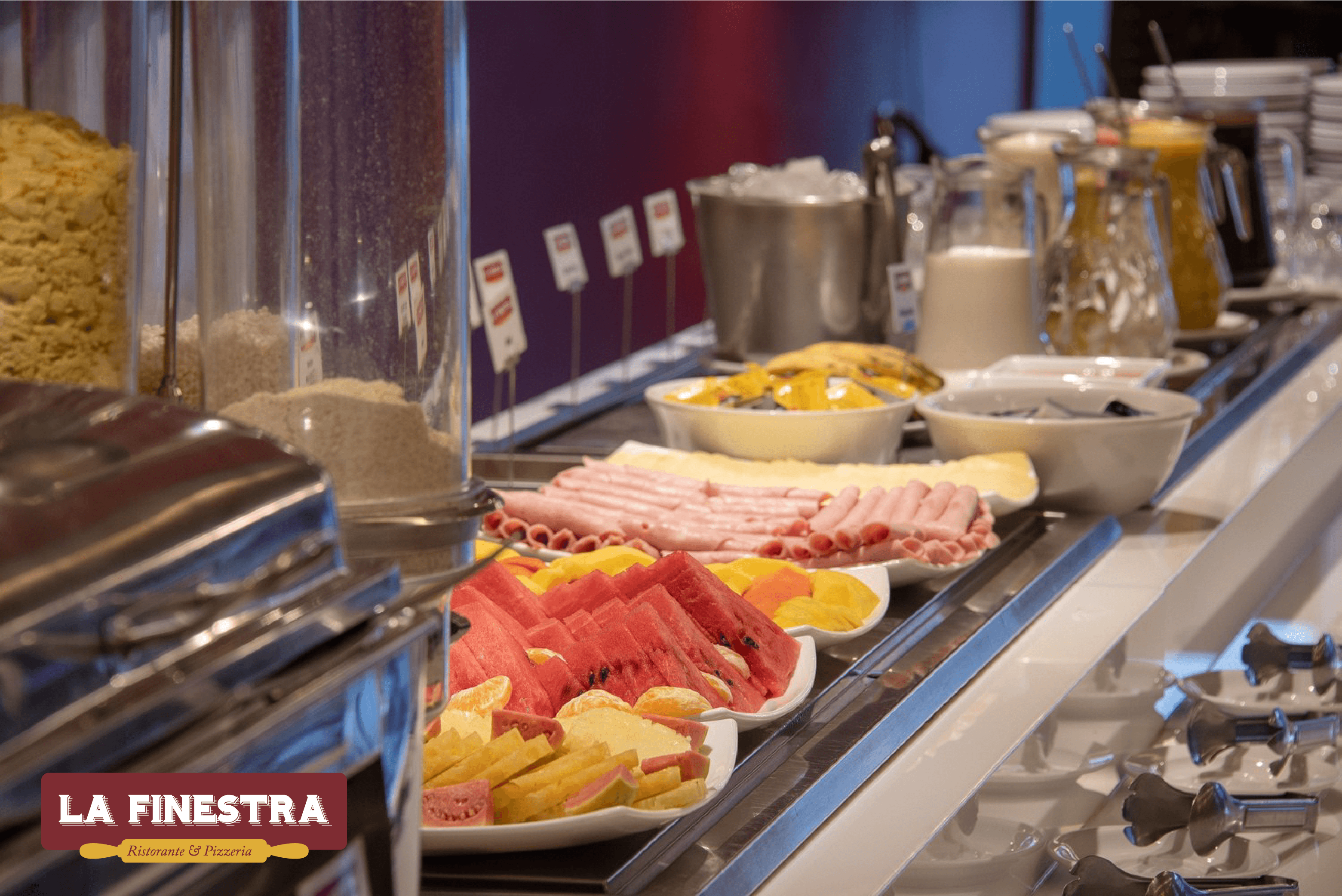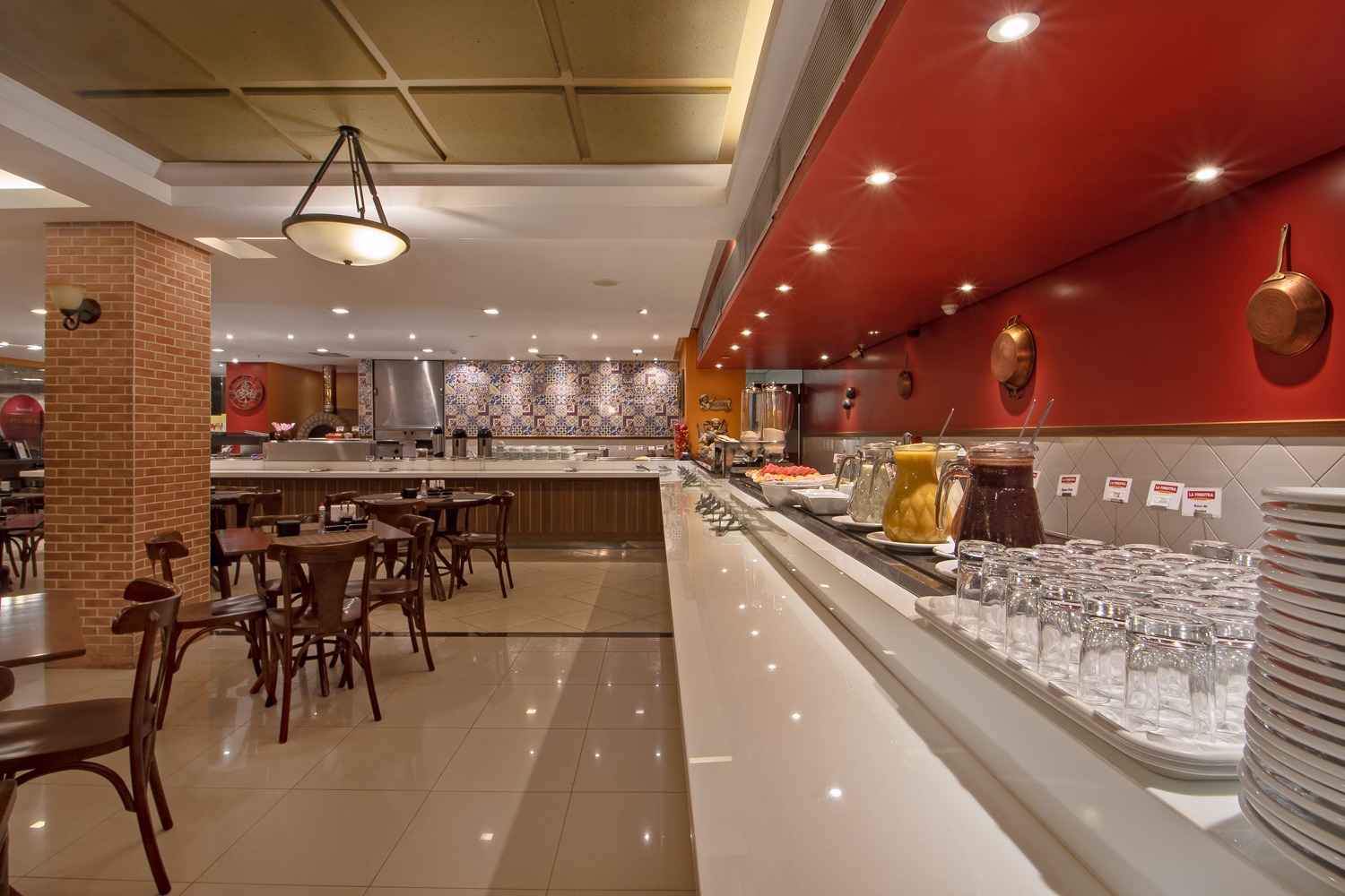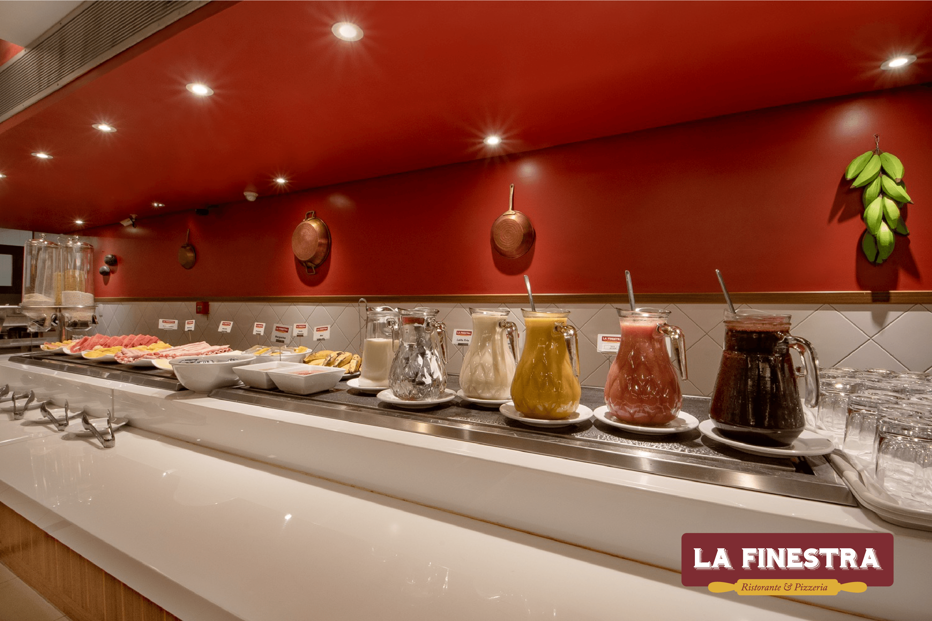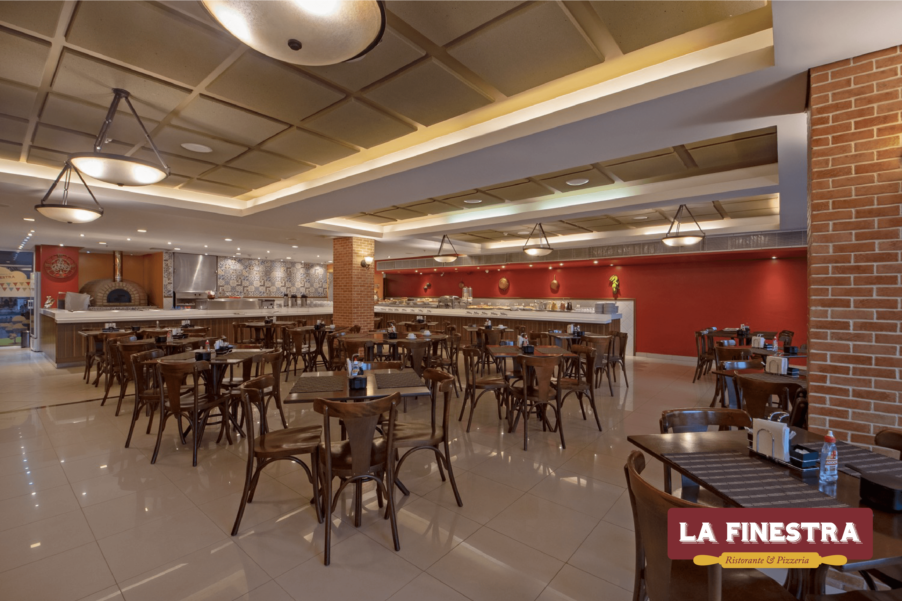 No lobby está um restaurante com temática italiana, onde é oferecido estação de massas, pasta show, pizzas e buffet com variadas opções de carnes e grelhados.